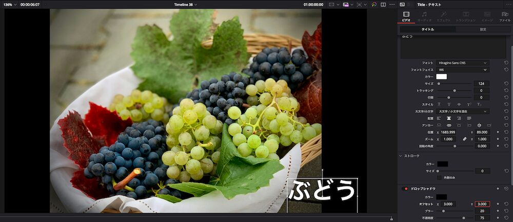 右上のインスペクタのところで、タイトルの下にある「Basic Title」を書き直して「ぶどう」とします。